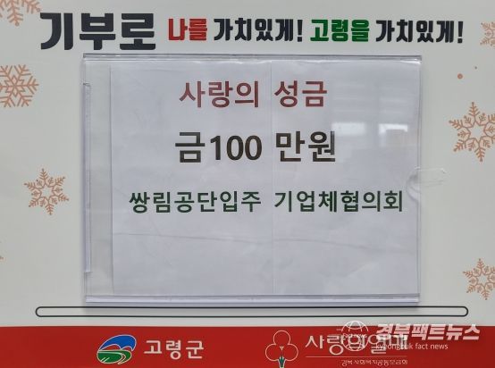 경북팩트뉴스 김영란 기자 | 2024년 12월 20일 사)쌍림공단입주기업체협의회는 연말연시를 맞아 지역사회의 어려운 이웃을 돕기위해 사랑의 성금 100만원을 기부했다.