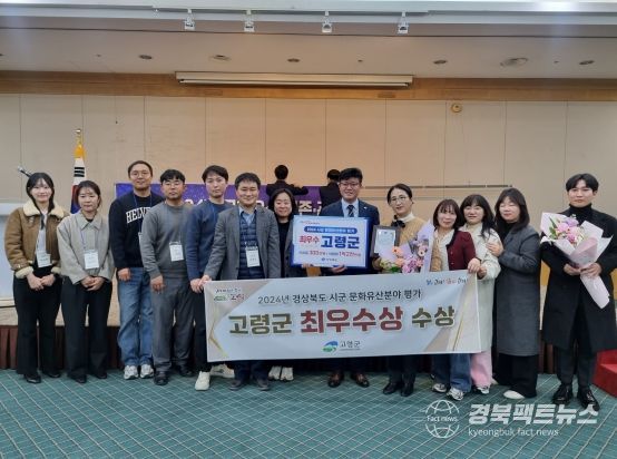 경북팩트뉴스 김영란 기자 | 고령군이 문화유산분야에서 최우수상 2관왕을 달성하는 쾌거를 이뤘다. 국가유산청에서 실시한 ‘2024년 전국 지자체 국가유산 관리역량 진단 평가’에서 전국 최우수 지자체로 선정된 것에 이어, 지난 12월 19일 경상북도에서 실시한 ‘시군 문화유산분야 평가’ 최우수상을 수상하는 경사가 이어졌다.