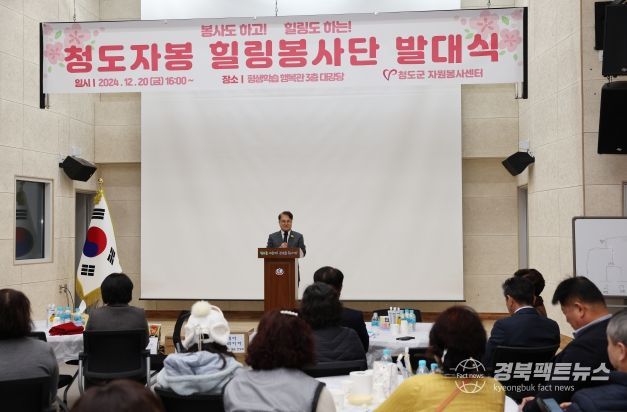 경북팩트뉴스 김영란 기자 | 청도군은 청도군자원봉사센터 주관으로 20일 청도평생학습행복관 3층 대강당에서 자원봉사자와 관계자 등 100여 명이 참석한 가운데 ‘청도자봉 힐링봉사단 발대식’을 개최했다.