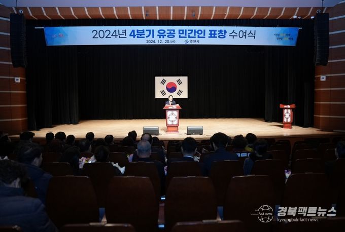 경북팩트뉴스 김영란 기자 | 영천시는 20일 시민회관에서 지역사회 발전과 시민 복리증진 등을 위해 노력한 유공자를 대상으로 2024년 4분기 표창 수여식을 개최했다.
