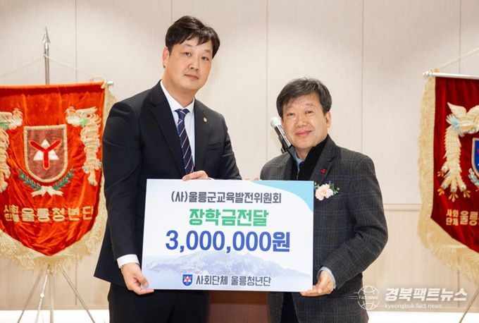경북팩트뉴스 김영란 기자 | 울릉청년단은 지난 21일 16시 울릉한마음회관 대회의실에서 우리 지역의 교육 발전 및 인재 양성을 위해 (사)울릉군교육발전위원회에 장학금 300만원을 기탁했다.