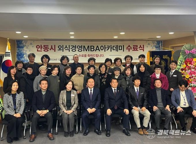 경북팩트뉴스 김영란 기자 | 안동시는 12월 20일 수료생과 안동시장, 안동시의회의장 등 관계자 50여 명이 참석한 가운데 ‘안동시 외식경영 MBA 아카데미’ 수료식을 성황리에 마무리했다.