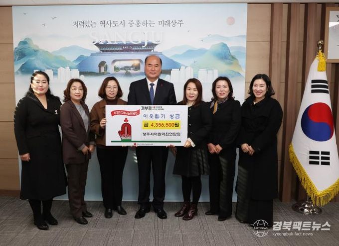 경북팩트뉴스 김영란 기자 | 상주시 어린이집연합회는 20일 오전 상주시청 시민의 방에 방문하여 이웃을 돕기 위한 성금 435만 6500원을 기탁했다.