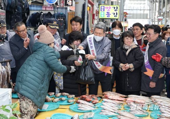 17일 이강덕 포항시장은 지역 유관 기관 및 각종 단체와 함께 죽도시장을 찾아 명절 물가 동향을 살피며, 지역 경제에 활력을 불어넣기 위해 전통시장 장보기에 나섰다.