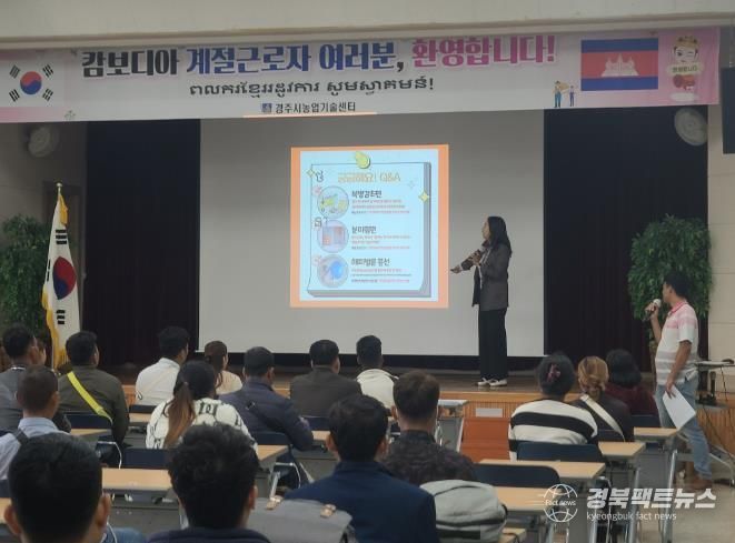 주낙영 경주시장은 “현재 지역 농가에 투입되는 캄보디아 근로자들의 60% 이상이 재입국자로 이미 경주는 계절근로자 프로그램이 정착 단계에 접어들었다”라며 “앞으로도 계절근로자 운영에 힘써 전국 최우수 지자체로 자리매김하겠다”고 말했다.