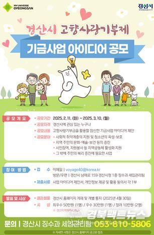 경북팩트뉴스 조현묵 기자 | 경산시는 고향사랑기부금을 활용하여 기부자와 시민이 공감할 수 있는 기금사업을 발굴하기 위해 아이디어 공모를 실시한다고 밝혔다.