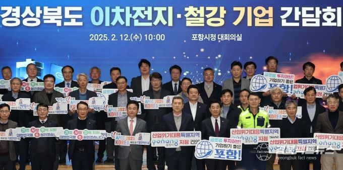 포항시청 대회의실에서 열린 철강기업 간담회에는 이강덕 포항시장을 비롯해 이철우 경북도지사, 김일만 포항시의회 의장, 도의원, 유관기관 및 이차전지·철강기업 관계자 50여 명이 참석했으며, 이차전지·철강기업의 현황과 전망을 공유하고 기업들의 건의 및 애로사항을 청취했다.