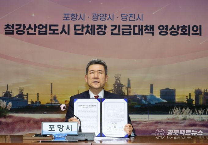 경북팩트뉴스 조현묵 기자 | 글로벌 통상환경 악화로 철강산업의 위기가 고조되고 있는 가운데 포항시는 13일 광양·당진시와 ‘철강산업도시 단체장 긴급대책 영상회의’를 갖고 공동 대응 모색에 나섰다.