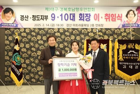 경북팩트뉴스 조현묵 기자 | (재)경산시장학회는 (재)대구·경북 호남향우 연합회 경산청도지부가 14일 더아트라움웨딩에서 열린 회장단 이·취임식에서 인재 육성을 위한 장학금 100만 원을 기탁했다고 밝혔다.