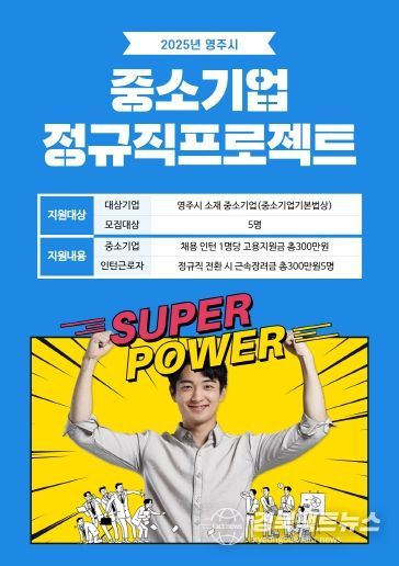 경북팩트뉴스 조현묵 기자 | 영주시는 관내 중소기업 인력난 해소와 미취업 청년, 결혼이민자 등 취업애로계층의 고용 지원을 위해 ‘2025년 중소기업 정규직 프로젝트 사업’을 추진하며, 오는 24일부터 3월 7일까지 참여 기업과 인턴을 모집한다.