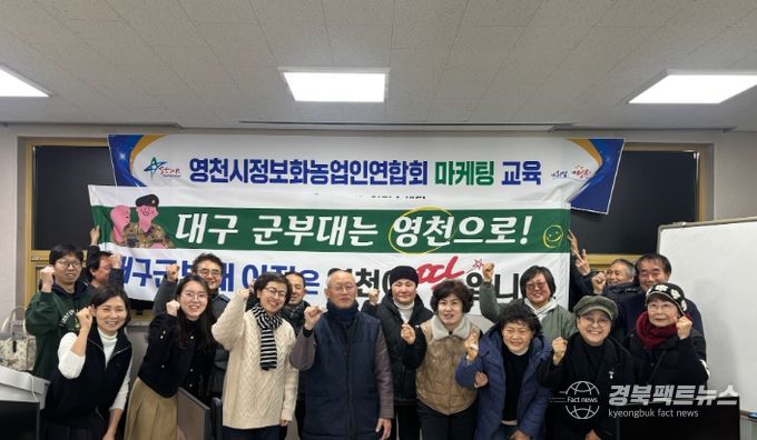 경북팩트뉴스 조현묵 기자 | 영천시정보화농업인연합회(회장 조성희)는 지난 24일 영천시농업기술센터에서 상반기 마케팅 교육을 실시했다.