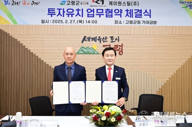 경북팩트뉴스 조현묵 기자 | 고령군은 지난 2월 27일 가야금방에서 케이원스틸(주)과 투자유치 업무협약을 체결했다.
