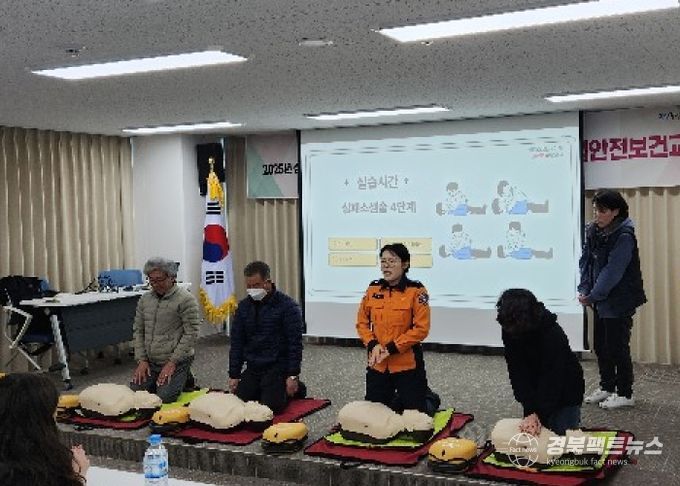 이번 교육은 정부재정일자리사업 참여자 30명이 참석한 가운데, 성주소방서의 협조를 받아 심폐소생술 등 응급처치 안전보건교육을 실시하여 근무 중 갑작스러운 사고 발생 시 신속한 조치가 이루어지도록 진행됐다. 또한, 한국산업안전보건공단 대구서구지사 이정민 과장을 강사로 초빙하여 산업안전보건법 안내 및 재해예방, 사례 등을 중점 교육했다.