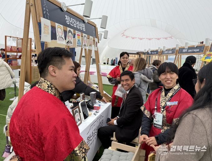 이 가운데 경주의 핫플레이스인 황리단길을 그대로 옮겨 놓은 듯한 ‘황리단길 청년 감성 스토어’ 팝업 부스가 대표단의 눈과 입맛을 사로잡고 있다.