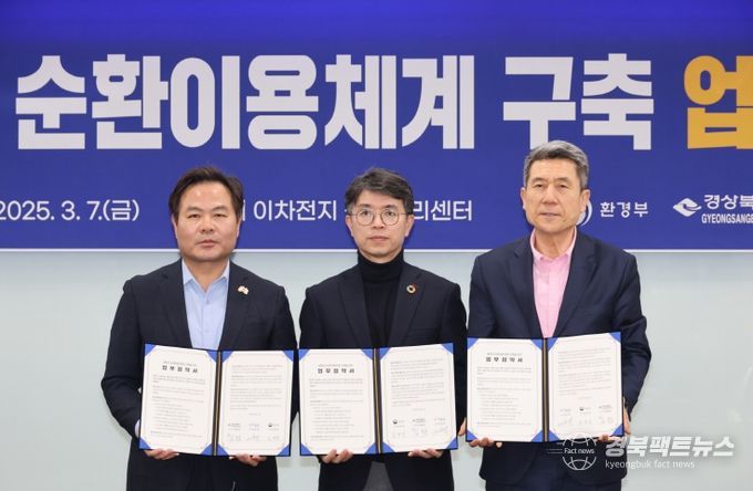 이날 협약에서 포항시와 환경부, 경북도는 배터리 순환이용 산업을 국가 핵심 녹색산업으로 육성하기 위해 상호협력을 강화키로 했다.