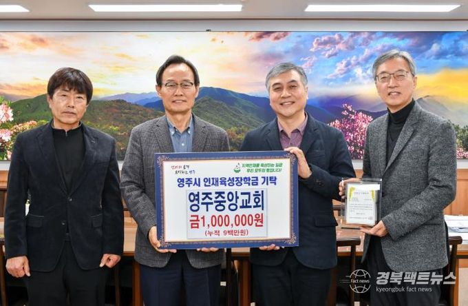 경북팩트뉴스 조현묵 기자 | (재)영주시인재육성장학회는 지난 7일 영주중앙교회가 지역 인재 양성을 위해 100만 원을 기탁했다고 밝혔다.