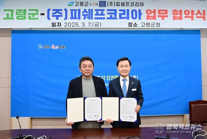 경북팩트뉴스 조현묵 기자 | 고령군은 지난 3월 7일 고령군청 우륵실에서 ㈜피쉐프코리아(대표 박기태)와 지역농산물 홍보를 위한 업무협약을 체결했다.