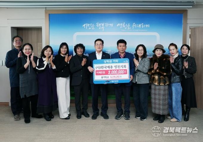경북팩트뉴스 조현묵 기자 | (사)한국문화예술단체 총연합회 영천지회는 지난 7일 200만원의 장학금을 (재)영천시장학회에 기탁했다.