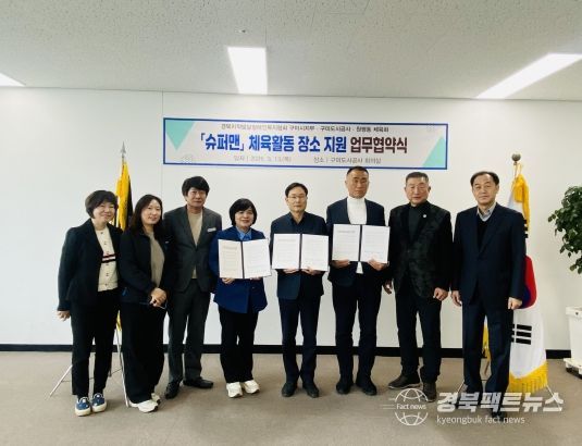 경북팩트뉴스 조현묵 기자 | 구미도시공사 원평하수처리팀은 3월 13일 경북지적발달장애인복지협회 구미시지부, 원평동 체육회와 지방소멸과 저출생 문제 해결을 위한 공동의 노력으로 풋살장 무료 이용에 관한 업무협약을 체결했다.