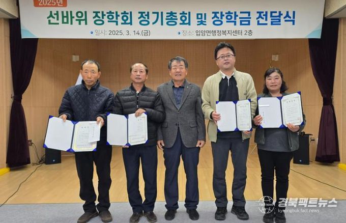 경북팩트뉴스 조현묵 기자 | 입암면 선바위장학회는 3월 14일 입암면행정복지센터 회의실에서 제31회 선바위장학회 정기총회를 개최하여 영양군 입암면 출신 대학생 3명, 고등학생 1명에게 장학금을 전달했다.