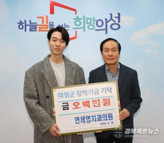 경북팩트뉴스 조현묵 기자 | (재)의성군인재육성재단은 지난 18일 의성에 위치한 연세영치과의원이 지역 인재육성을 위해 장학금 500만원을 기탁했다고 밝혔다.