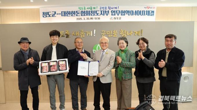 경북팩트뉴스 조현묵 기자 | 청도군과 대한한돈협회청도지부는 산모들의 건강 회복을 위한 한돈 꾸러미 지원사업 추진을 위해 업무협약(MOU)을 체결했다. 저출생 극복 및 출산 장려를 위한 아동복지기금을 기탁했다.