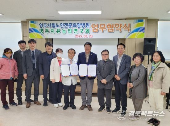 경북팩트뉴스 조현묵 기자 | 영주시 치유농업연구회와 영주시립노인전문요양병원은 지난 20일 영주시립노인전문요양병원에서 업무협약(MOU)을 체결했다.