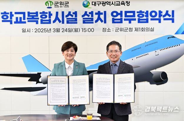 경북팩트뉴스 조현묵 기자 | 군위군과 대구시교육청은 24일 군위군청에서 군위군 학교복합시설(군위 아이사랑키움터) 사업 추진을 위한 업무협약을 체결했다.