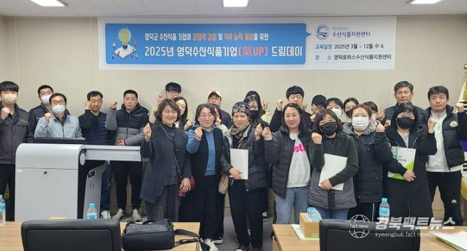 경북팩트뉴스 남유신 기자 | 영덕로하스수산식품지원센터는 관내 수산식품 관련 기업의 경쟁력 강화와 HACCP 지정업체 법정의무교육 이수를 목적으로 지난 20일 ‘영덕 수산식품 기업(氣UP) 드림데이’의 1회차 교육 프로그램을 진행했다.