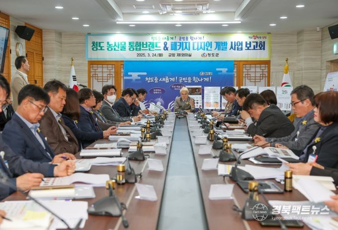 경북팩트뉴스 조현묵 기자 | 청도군은 지난 24일 지역 농산물에 대한 국내시장에서의 상품 이미지 개선 및 홍보경쟁력 강화와 브랜드 자산 구축의 기초를 마련하기 위한 농산물 통합브랜드 및 패키지 디자인 개발 보고회를 개최했다.
