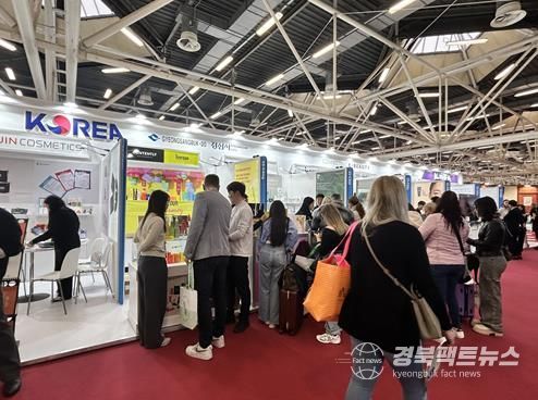경북팩트뉴스 조현묵 기자 | 경산시는 지난 3월 20일부터 23일까지 이탈리아 볼로냐에서 열린 세계 최대 규모의 뷰티 박람회 ‘2025 코스모프로프 볼로냐’에 참가해 총 286건, 640만 달러 규모의 수출 상담과 함께 970만 달러 상당의 수출 계약을 체결하는 성과를 거뒀다고 밝혔다.