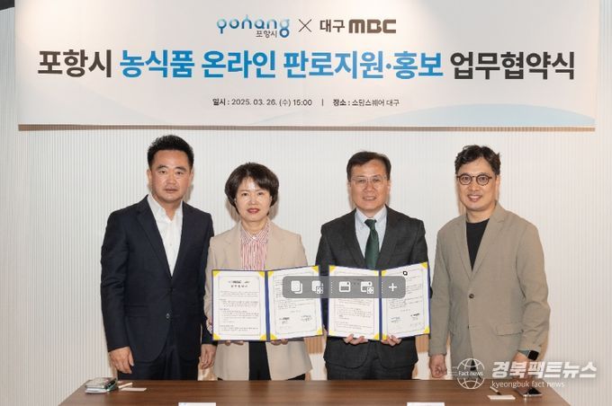 경북팩트뉴스 남유신 기자 | 포항시는 26일 지역 우수 농특산품과 소상공인의 온라인 판로 확장을 목표로 대구MBC㈜가 총괄 운영하는 소담스퀘어 대구와 디지털 커머스 활성화를 위한 업무협약을 체결했다.