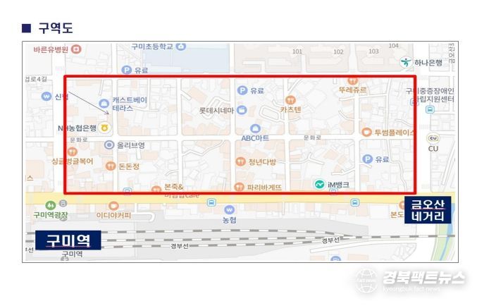 경북팩트뉴스 조현묵 기자 | 구미시는 구미역 앞 ‘문화로’가 자율상권구역으로 지정된 것을 기념해 3월 31일부터 ‘구미사랑상품권 환급 행사’를 실시한다.