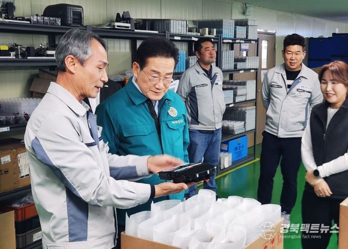 경북팩트뉴스 조현묵 기자 | 최기문 영천시장은 지난 1일 민생경제 회복 소비 촉진 캠페인에 동참하고, 기업체와 소통하기 위한 다음 발걸음으로 봉동에 위치한 ㈜디에이치씨 기업체를 방문했다.