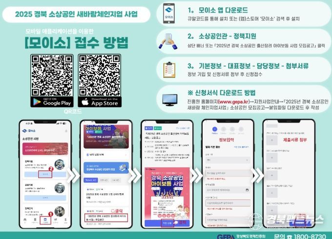 접수기간은 4월 16일 오전 10시부터 5월 19일 오후 6시까지이고, 신청은 모바일(「모이소」앱), 우편(경북경제진흥원 경북행복지원단)으로 할 수 있다.