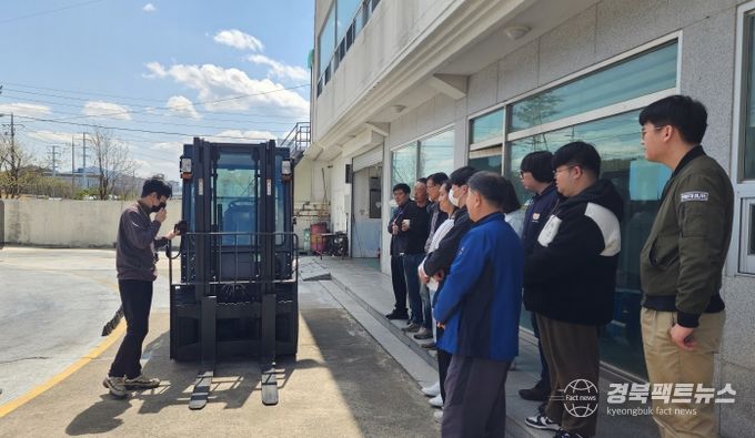 경북팩트뉴스 조현묵 기자 | 김천상공회의소는 ‘기업 수요 맞춤형 인력양성사업’의 일환으로 ‘물류 전문가 양성사업’의 1차 과정 교육생을 대상으로 지게차 실습을 시작했다.