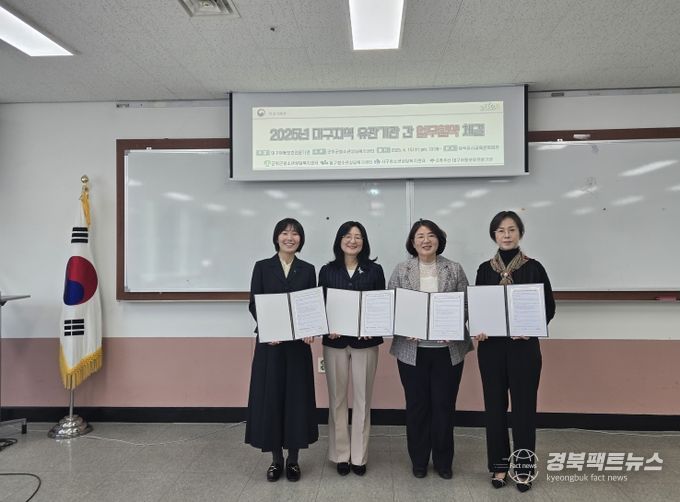 경북팩트뉴스 조현묵 기자 | 군위군청소년상담복지센터에서는 지난 16일 삼국유사교육문화회관에서 2025년 대구지역 유관기관 간 업무협약(MOU)을 체결했다고 밝혔다.