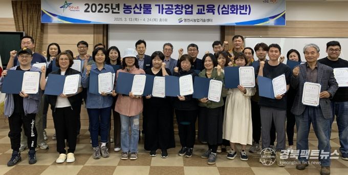 경북팩트뉴스 조현묵 기자 | 영천시는 지난 24일 농업기술센터 생활과학관에서 ‘농산물 가공 창업 심화교육 수료식’을 가졌다고 밝혔다.