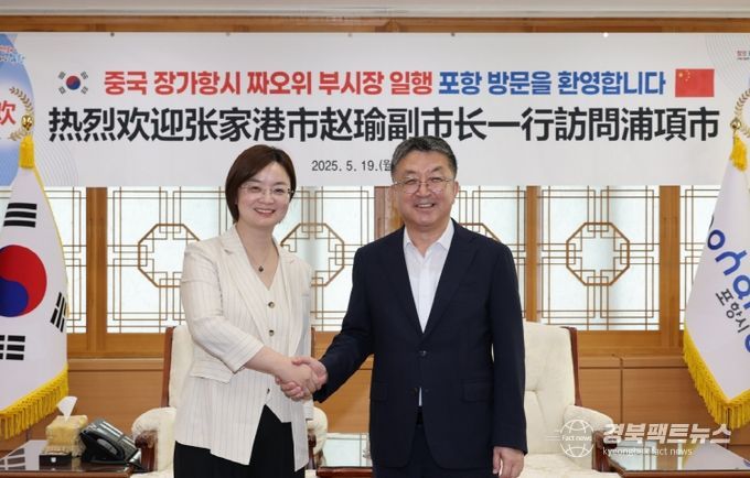경북팩트뉴스 남유신 기자 | 포항시는 지난 19일 시청에서 중국 강소성 장가항시 짜오위(赵瑜) 부시장 일행을 공식 접견하고 양 도시 간 실질적인 교류협력 확대를 위한 의견을 나눴다.