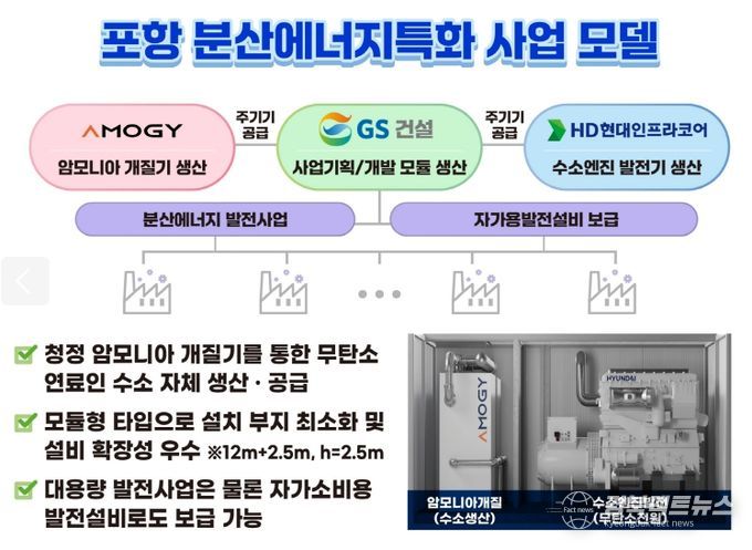 영일만 산업단지를 중심으로 암모니아 기반 수소엔진 발전설비를 구축하고, 이차전지 기업에 무탄소 전력을 공급함으로써 친환경 산업 인프라를 조성한다는 전략이다.