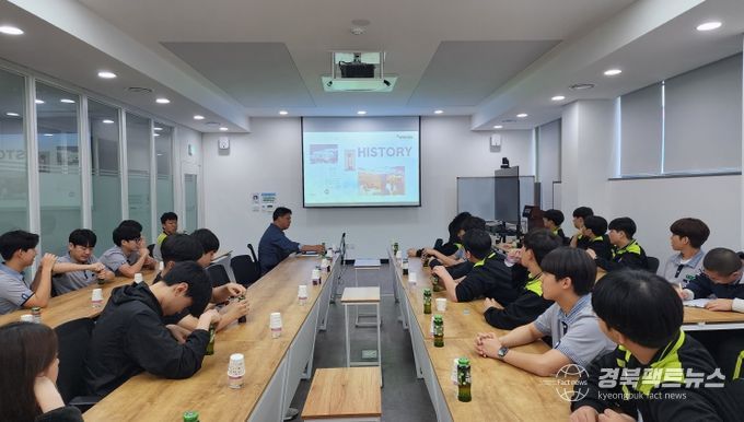 경북팩트뉴스 조현묵 기자 | 김천상공회의소는 지난 5월 29일 ‘2025년 김천시 우수기업체 견학 프로그램’ 첫 과정을 통해 경북과학기술고등하교 재학생을 대상으로 관내 공장 견학과 취업역량강화 특강을 개최했다.