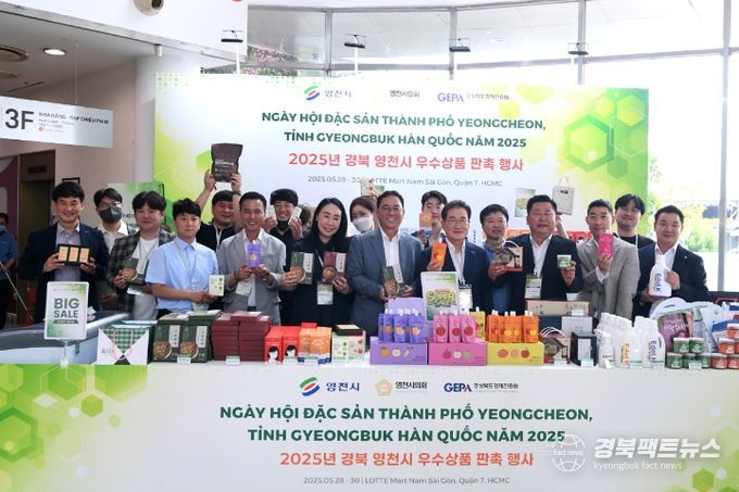 경북팩트뉴스 조현묵 기자 | 영천시 해외 무역사절단이 28일부터 30일까지 베트남 호치민 7군 롯데마트에서 개최하는 ‘2025년 경북 영천시 우수 상품 판촉 행사’가 현지에서 큰 호응을 얻고 있다.