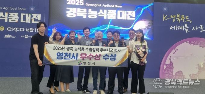 경북팩트뉴스 조현묵 기자 | 영천시는 5일 경상북도가 주관한 ‘2025년 농식품 수출정책 우수 시군평가’ 시상식에서 우수상을 수상하고, 상사업비 1,000만원과 시상금 200만원을 받았다고 밝혔다.