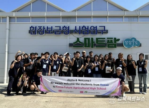 경북팩트뉴스 조현묵 기자 | 상주시농업기술센터는 6월 11일에 미국 하와이주 kohala고등학교 외 2개교 및 한국미래농업고등학교 교사와 학생 40명이 선진 스마트팜 현장 견학을 위해 농업기술센터를 방문했다고 밝혔다.