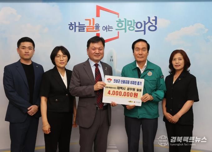 이번 성금은 지난 3월 발생한 대형 산불로 큰 피해를 입은 의성군민의 일상 회복을 응원하기 위해 마련된 것으로, 태백시청 공무원들이 자발적으로 모금에 참여해 조성한 정성 어린 기부금이다.