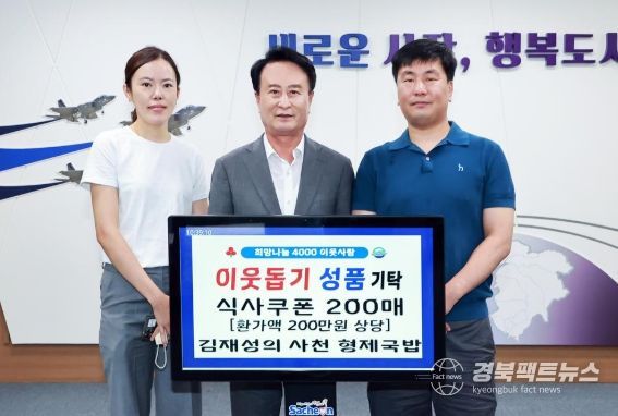 경북팩트뉴스 조현묵 기자 | 사천시는 김재성의 사천 형제국밥(대표 김재성)에서 여름방학 동안 결식 우려가 있는 아동들을 위해 식사 쿠폰(환가액 200만 원 상당)을 사천시에 기탁했다고 16일 밝혔다.