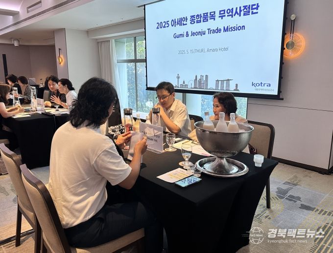 경북팩트뉴스 조현묵 기자 | 구미시가 싱가포르에서 개최한 ‘2025 구미 아세안 농식품 무역사절단’을 통해 총 35건, 1,248천 달러(한화 17억 원) 규모의 수출 상담 실적을 거두었다.