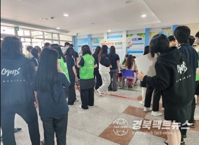 경북팩트뉴스 조현묵 기자 | 군위군청소년상담복지센터는 군위고등학교에서 군위교육지원청 위클래스와 함께 지난 6월 13일 점심시간을 이용하여 또래상담자 ‘학교폭력예방 캠페인 마음약국’을 운영했다.