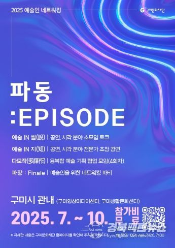 경북팩트뉴스 남유신 기자 | (재)구미문화재단(대표이사 이한석)은 오는 7월부터 10월까지 지역 예술인을 위한 네트워킹 프로그램 '파동 : Episode'를 운영하며, 이에 참여할 전문 예술인을 모집한다.