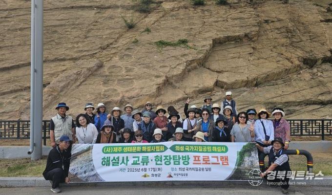 경북팩트뉴스 조현묵 기자 | 의성군은 지난 6월 17일, 의성 국가지질공원 일원에서‘(사)제주 생태문화 해설사협회&의성 국가지질공원 해설사 교류·현장탐방’행사를 개최했다고 밝혔다.